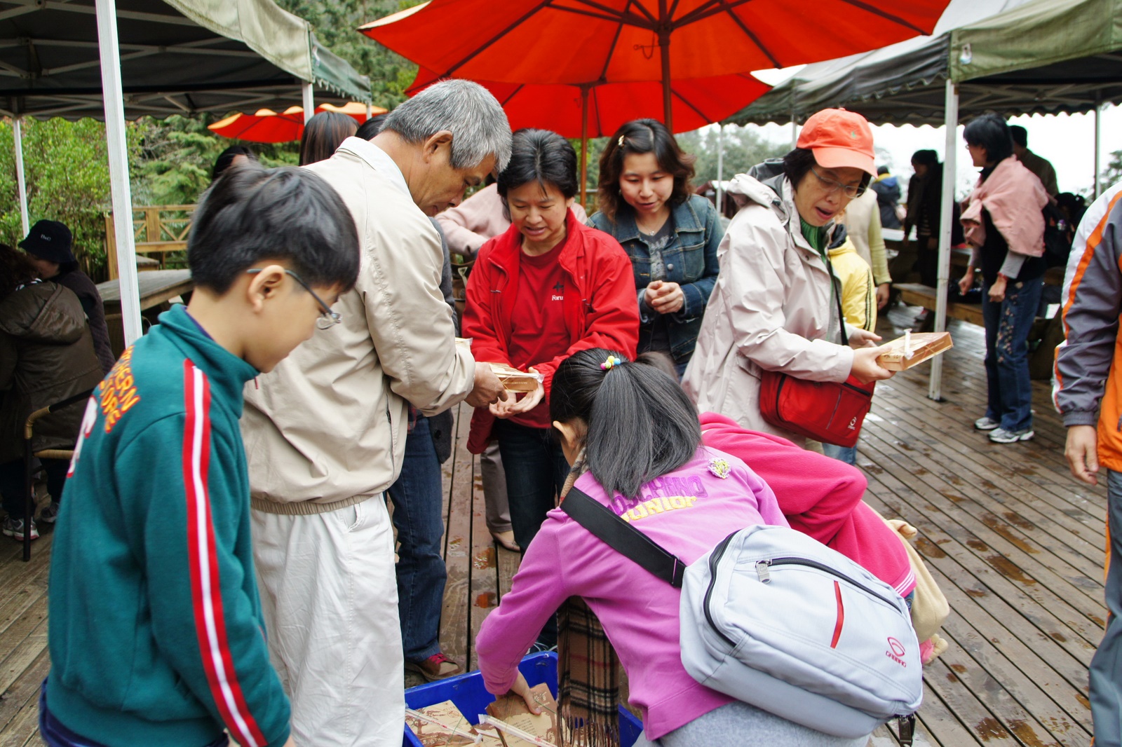 中午同仁們在棲蘭森林遊樂區內用餐盒